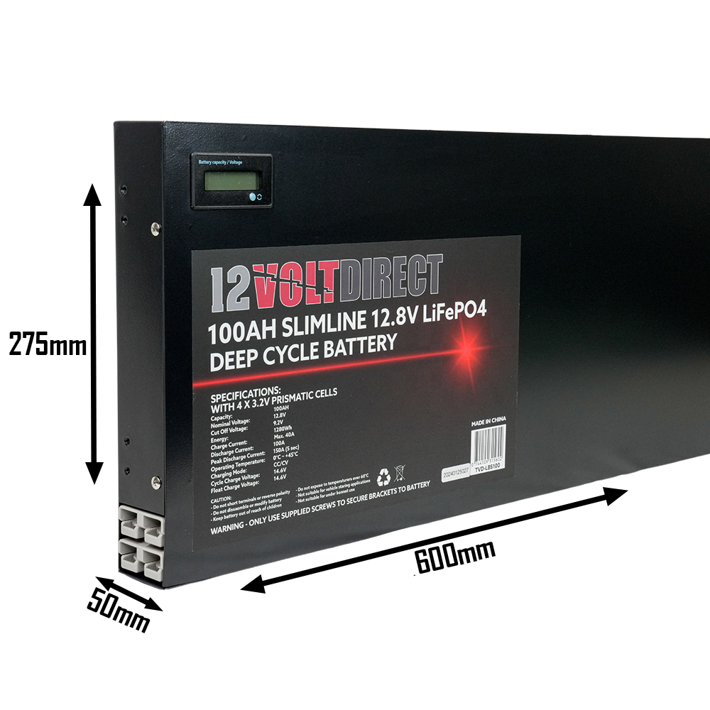 100Ah 12.8V Super Slimline Lithium LiFePO4 Deep Cycle Battery Brand: 12 Volt Direct SKU: TVD-LBS100