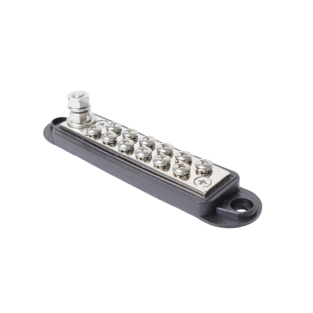 Use an busbar anywhere you need to distribute power cleanly and safely from one or more input cables to multiple output cables. A busbar is your central connection point that will organise your wiring, reduce clutter, and handle higher current loads.