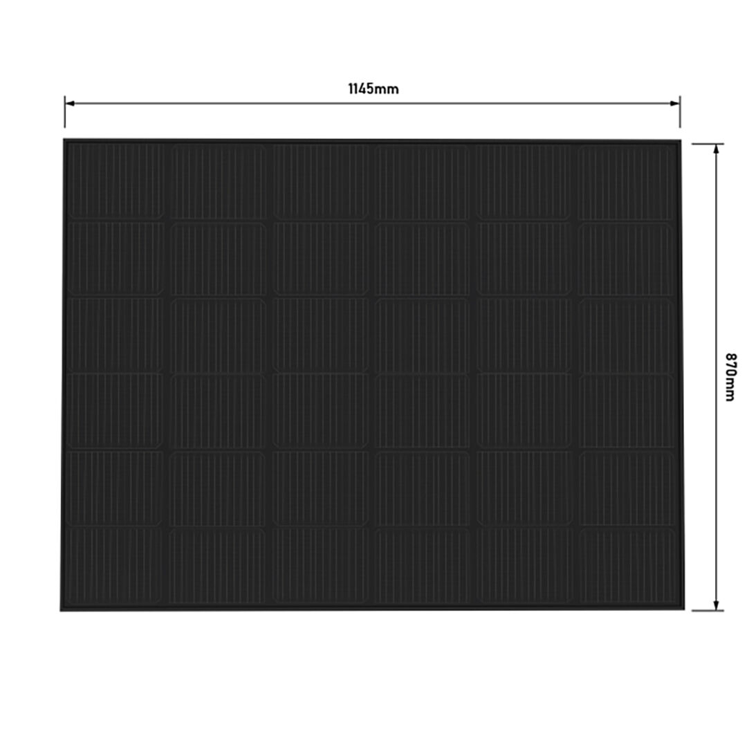 Measuring 1145 x 870 x 17mm, the panel’s squarer layout fits rooftop tent bases and roof racks far more efficiently than standard long panels, allowing for strong output without compromising usable roof space.