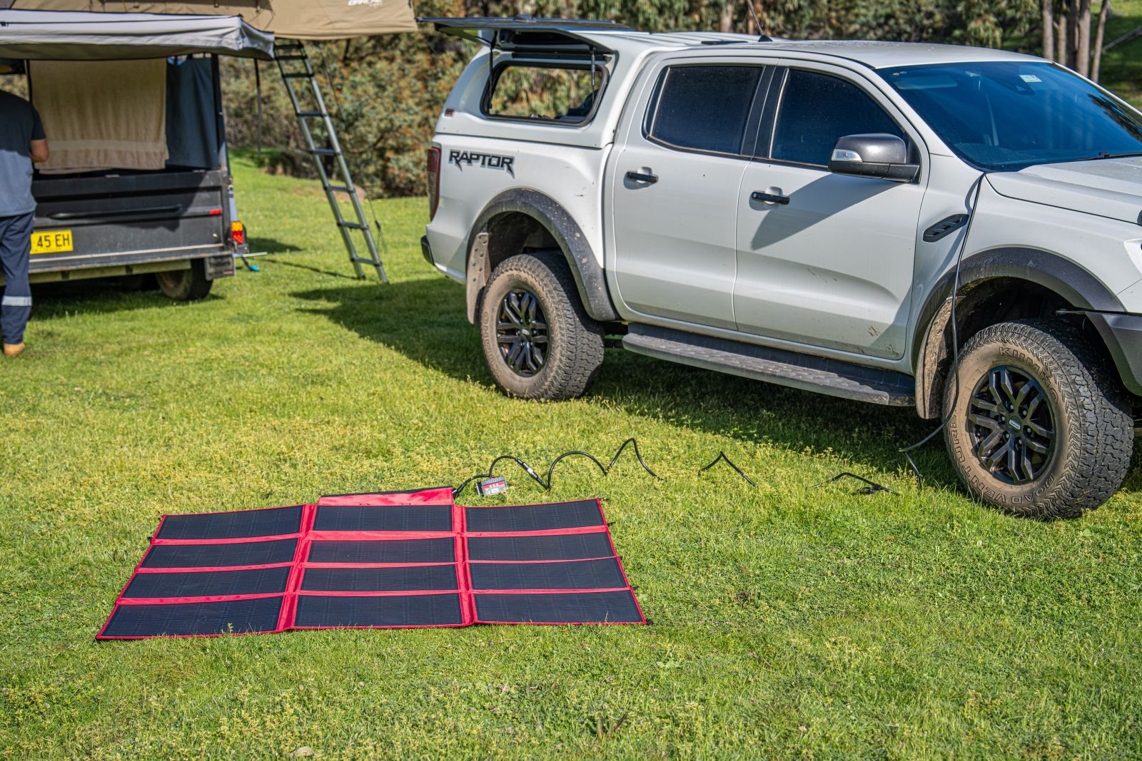Its compact folding layout makes transport simple, while the durable UV-resistant backing and reinforced mounting tabs ensure long-term reliability at camp, on the road, or at remote worksites. With fast, efficient charging and broad 12V system compatibility, the Expedition 400 keeps your gear powered wherever your adventure takes you.