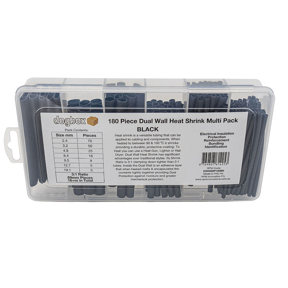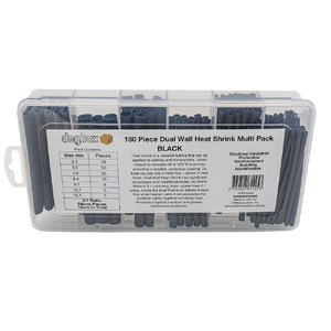 Premium adhesive-lined heat shrink tubing featuring a dual-wall construction for superior environmental protection and mechanical strain relief. This 180-piece assortment provides a comprehensive solution for professional wire and cable management applications.