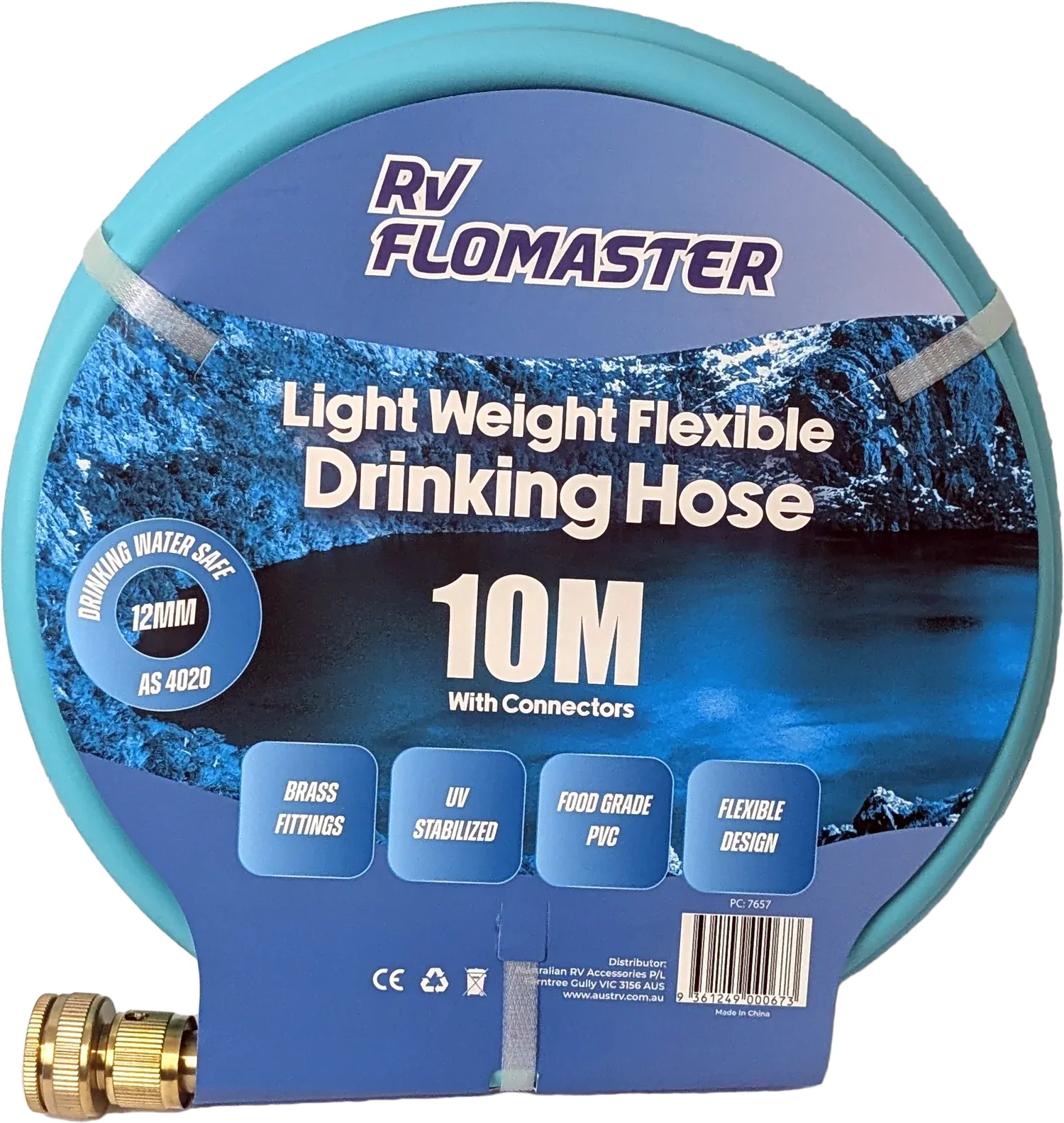 Built for Aussie adventures, the Flomaster 12mm Lightweight Hose is the reliable, compact water hose every caravanner, camper and vanlifer should pack. Made from food-grade PVC, UV stabilised for harsh Outback sun, and fitted with solid brass connectors, it’s the ideal setup for safe, hassle-free drinking water on the road.