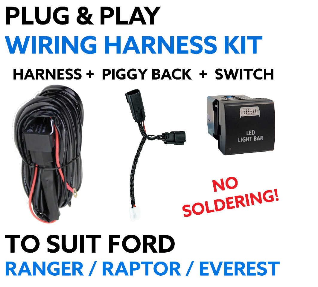 Ford Ranger PX2 PX3, Raptor & Everest (Pre 2022) Plug & Play Lightbar Wiring Harness with Square Toyota Switch to Suite Genuine Ford Switch Panels Brand: Perception Lighting SKU: WHK-RANGER-SQUARE-LB