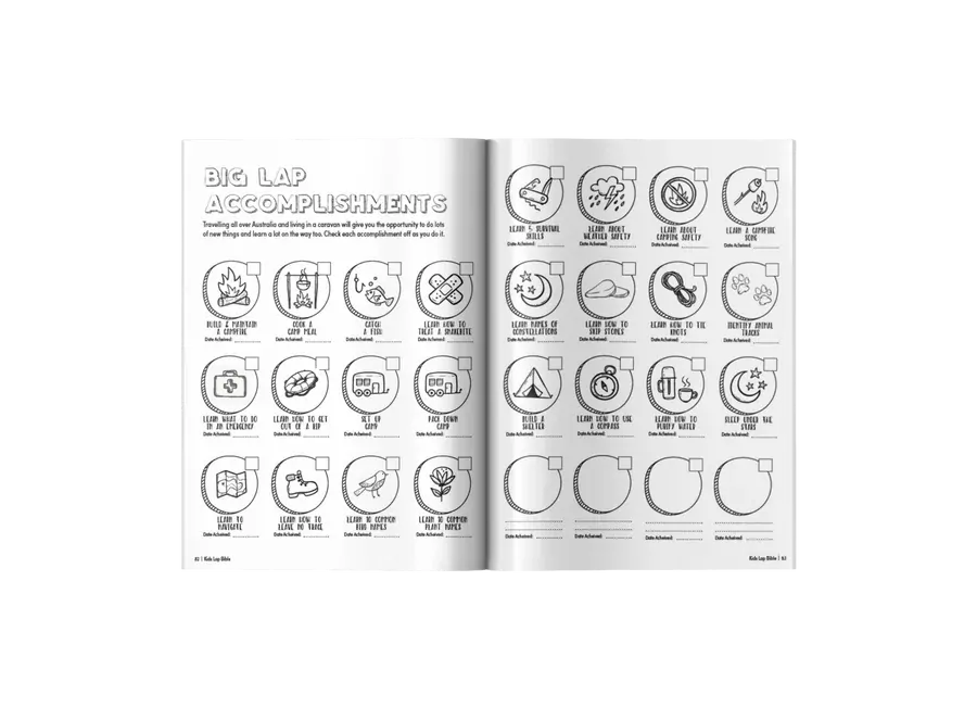This section includes a scavenger hunt of things to find all around Australia, Big Lap Accomplishments to complete, and a big bucket list that kids can fill in before or on their journey.