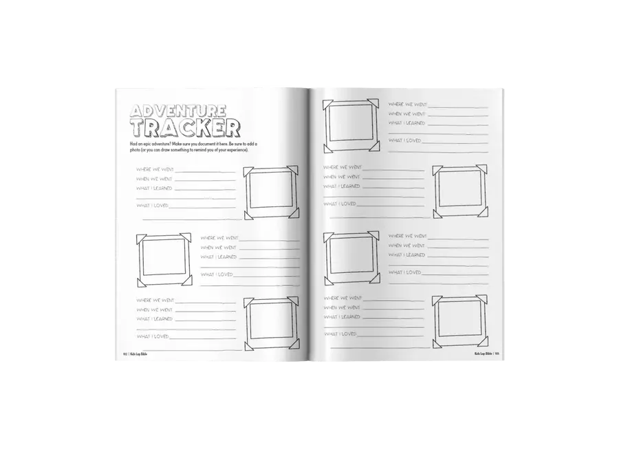 Finally, you’ll find the trackers and journal. These sections are designed to show kids their progress and act as a memento of their trip; something they can look back on when their trip is over. In the final pages, kids can stick in photos or things they find.