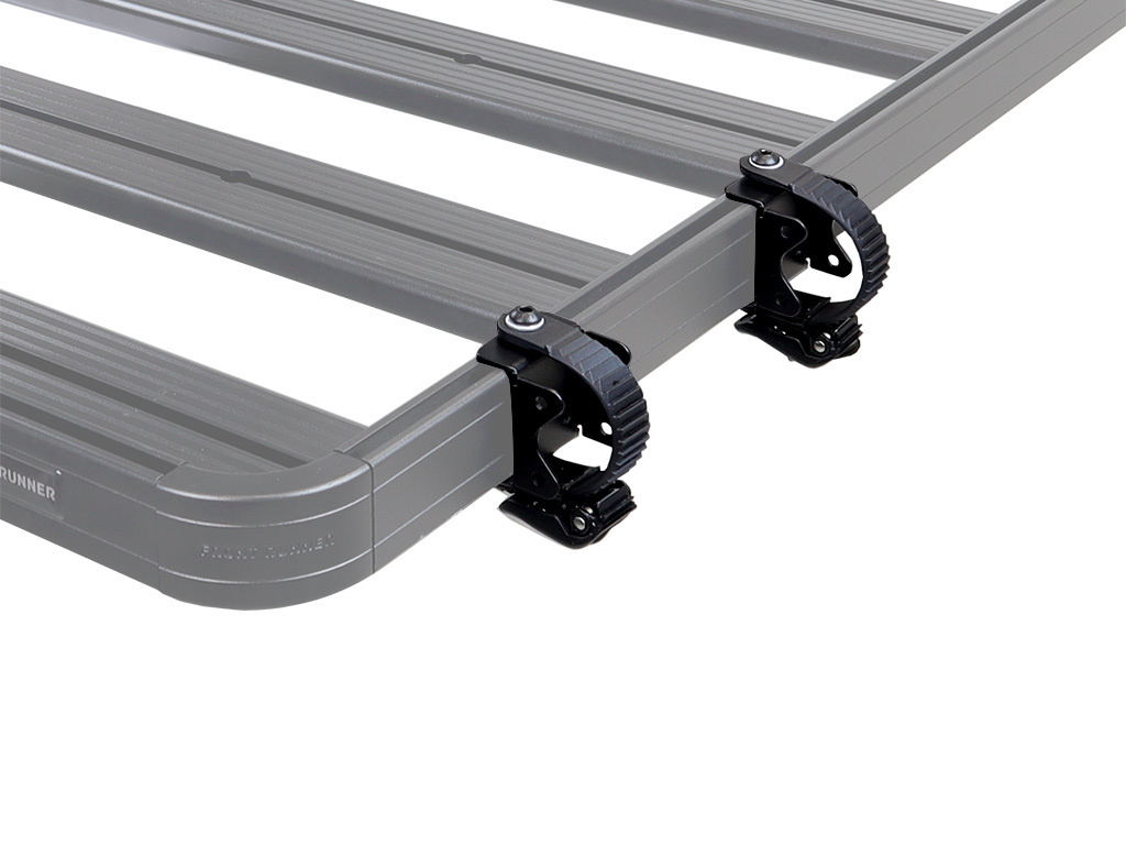 Mount a spade/shovel or similar gear up and out of the way on the side of a Front Runner Roof Rack. These brackets install along the Slimline II Roof Rack Tray side rails in minutes. No drilling required. Can accommodate most shovel sizes and is adjustable to fit gear 1/2'' (12mm) to 2'' (50mm) in diameter.