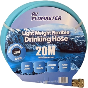 Built for Aussie adventures, the Flomaster 12mm Lightweight Hose is the reliable, compact water hose every caravanner, camper and vanlifer should pack. Made from food-grade PVC, UV stabilised for harsh Outback sun, and fitted with solid brass connectors, it’s the ideal setup for safe, hassle-free drinking water on the road.