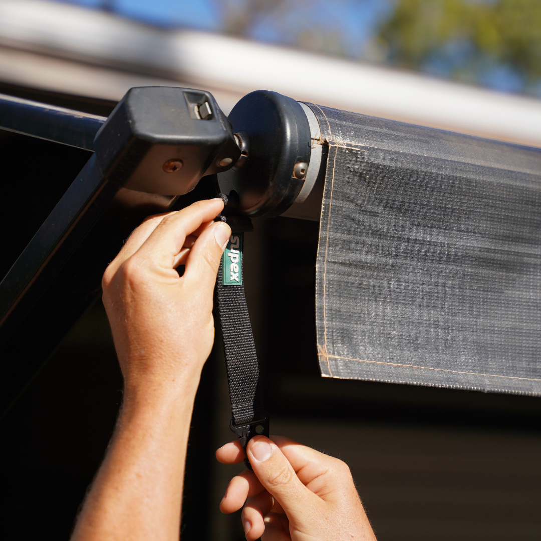 Functional, multi-use loops for your caravan awning. Want to hang your camp essentials off your awning? Want to use a tie-down system for added tension on your awning? These loops provide a point to hang and tie-down. Pack of two.